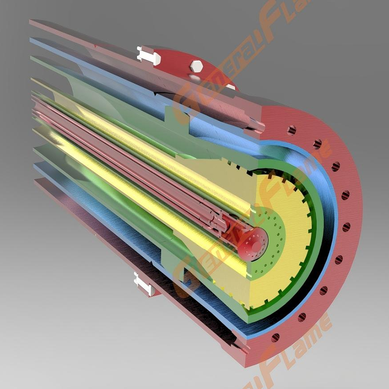 Принятие структуры двойного сгорания с вихревым и осевым потоком для достижения полного смешивания топлива и воздуха, увеличения эффективности сгорания до более чем 98% и значительного сокращения потерь энергии.