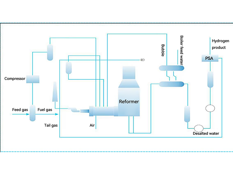 SMR - это химический процесс, используемый для крупномасштабного производства водорода в газовой промышленности. Процесс включает две химические реакции, которые в конечном итоге превращают воду и метан (обычно в виде природного газа) в чистый водород и углекислый газ. Затем водород дополнительно очищается до требований чистоты, указанных заказчиком (до 99,999%), для использования в производстве электроэнергии, нефтепереработке, бесчисленных химических процессах и многих других промышленных применениях.