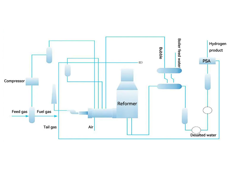SMR — это химический процесс, используемый для производства водорода в больших масштабах в газодобывающей промышленности. Этот процесс включает в себя две химические реакции, которые в конечном итоге преобразуют воду и метан (обычно в форме природного газа) в чистый водород и углекислый газ. Затем водород дополнительно очищается до заданных заказчиком требований к чистоте (до 99,999%) для использования в производстве электроэнергии, нефтепереработке, многочисленных химических процессах и многих других промышленных применениях.